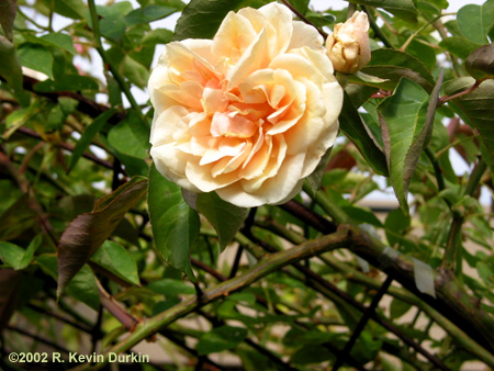 Reve d'Or, a tea-noisette climber, has proven completely hardy and healthy in our moist climate.