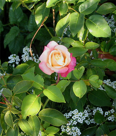 The tea rose 'Rosette Delizy' is very delicate in color and frangrence.